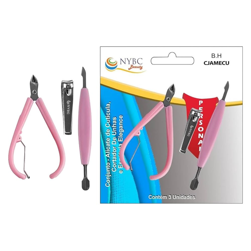 Conjunto Nybc Alicate para Cuticulas Espatula e Cortador de Unhas REF CJAMECU