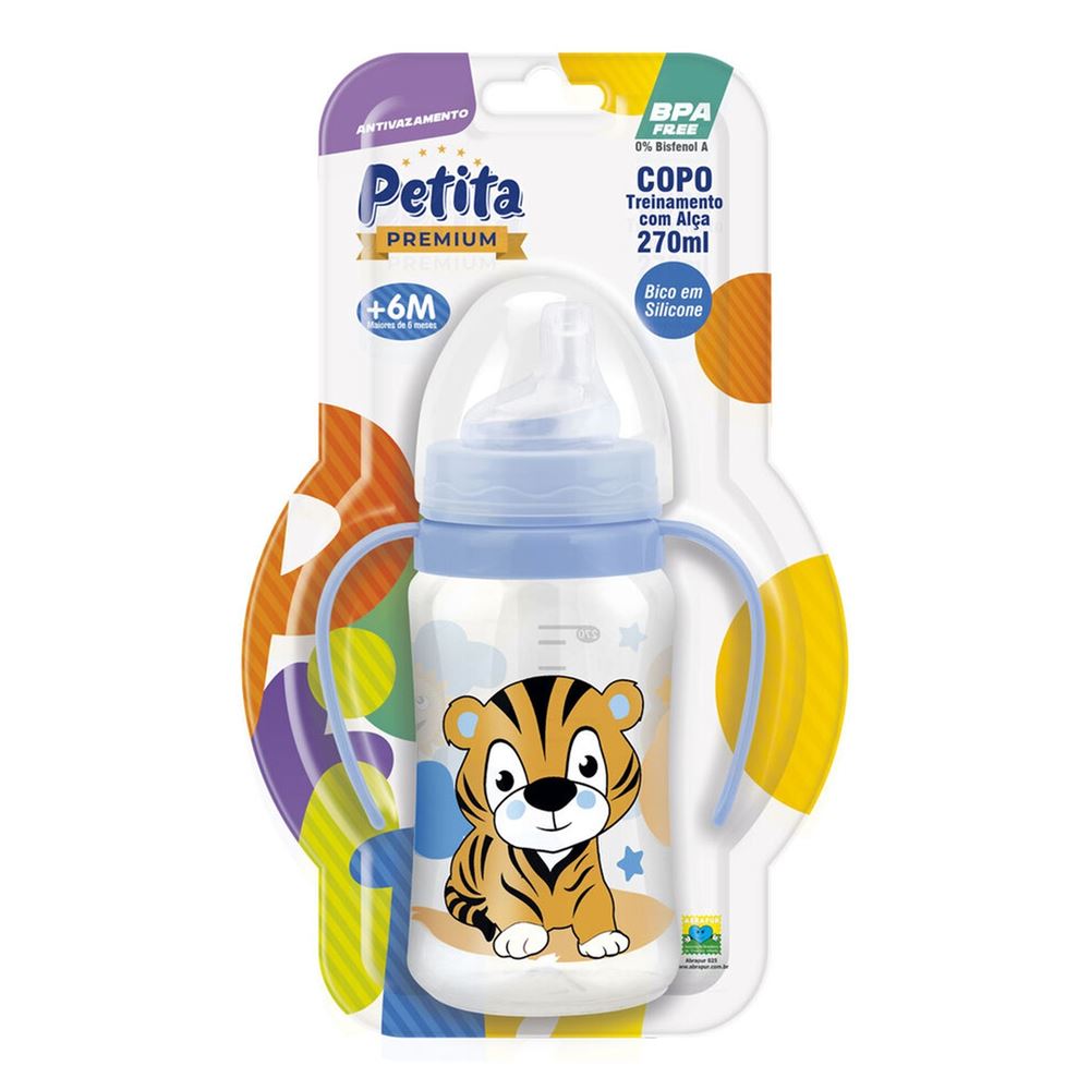 Copo de Treinamento Petita C/Alça Cristal/Azul 270ml