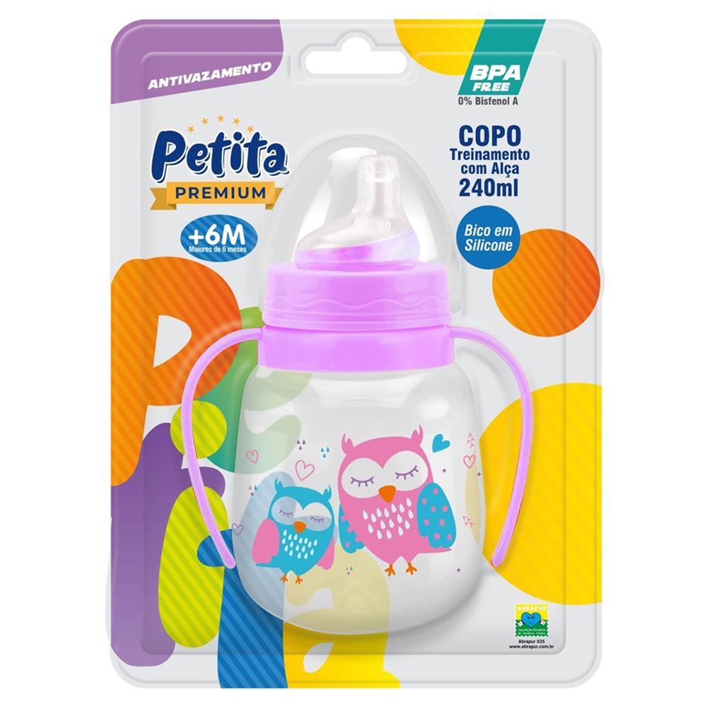 Copo de Treinamento Petita Relevo C/Alça Cristal/Lilás 240ml
