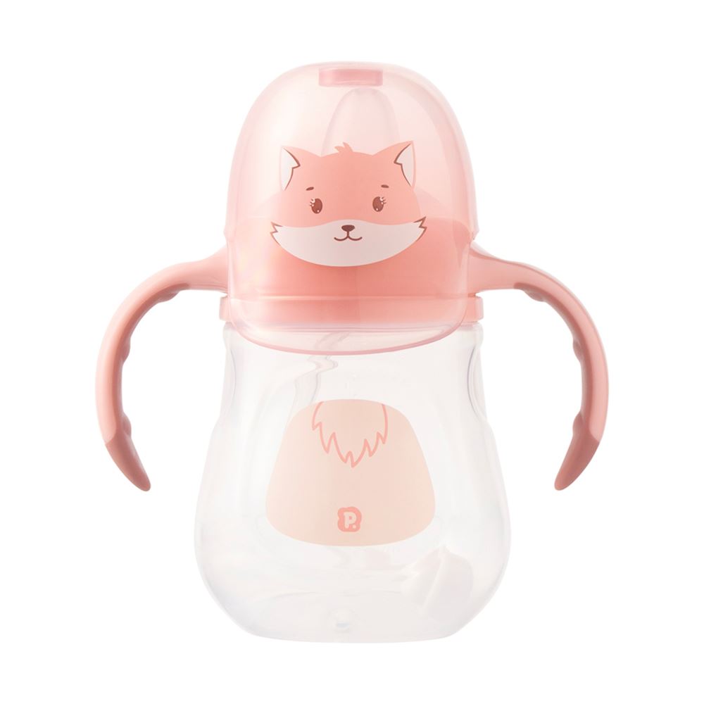 Copo Treinamento Pimpolho Bichinho Raposa C/Bico Flexivel Alça e Tampa Feminino 240ml Rosa