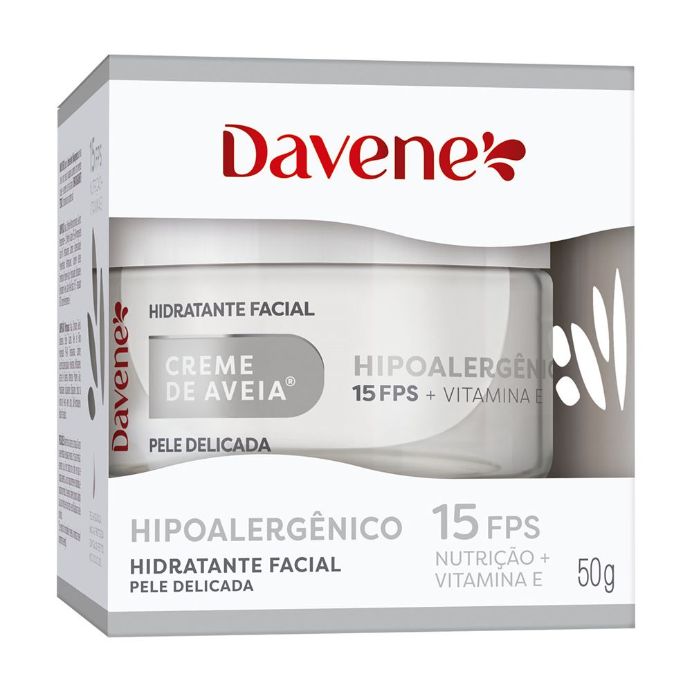 Creme de Aveia Hidratante Facial Davene FPS15 Hipoalergenico 50g