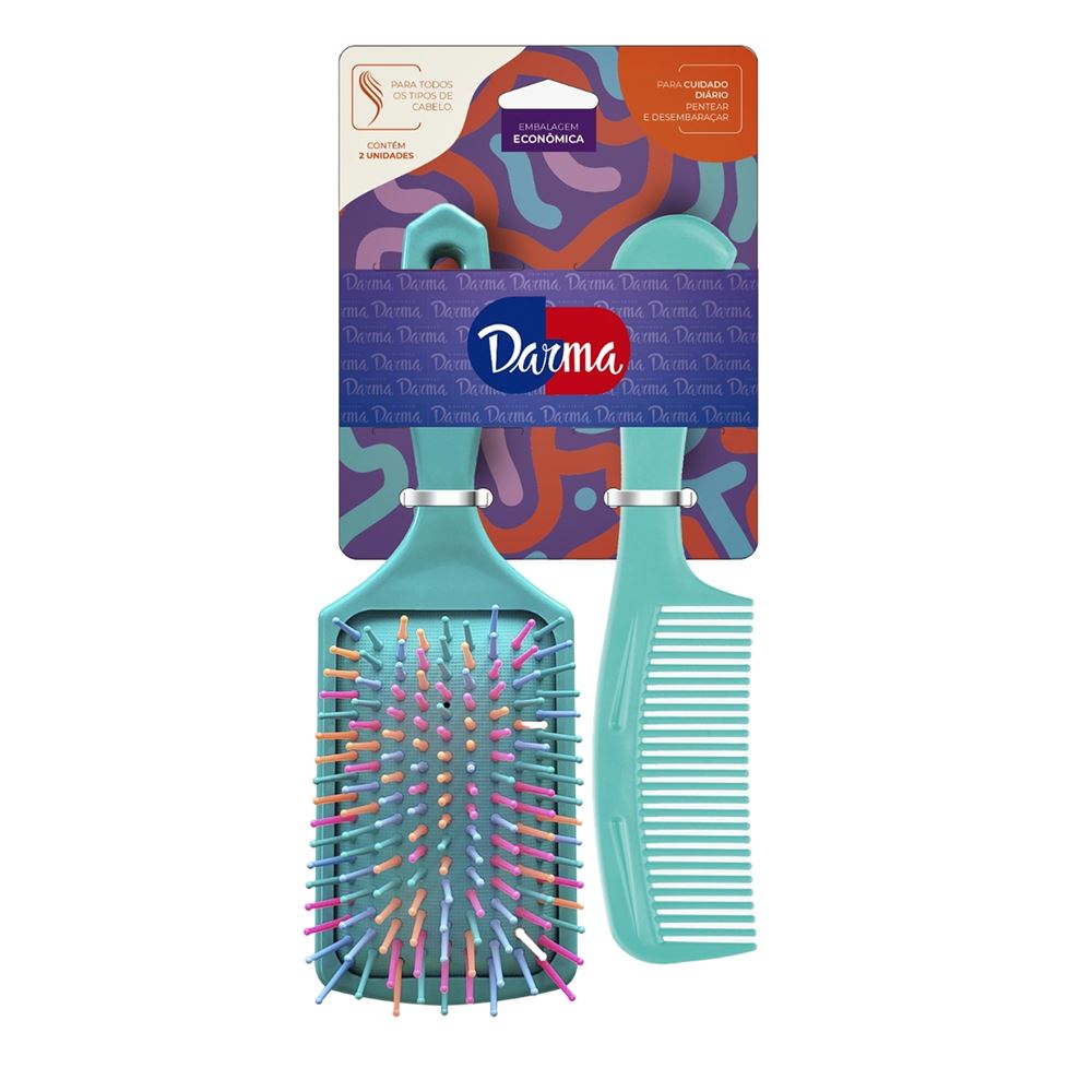 Kit Darma Black Escova Retangular + Pente Cabo Largo