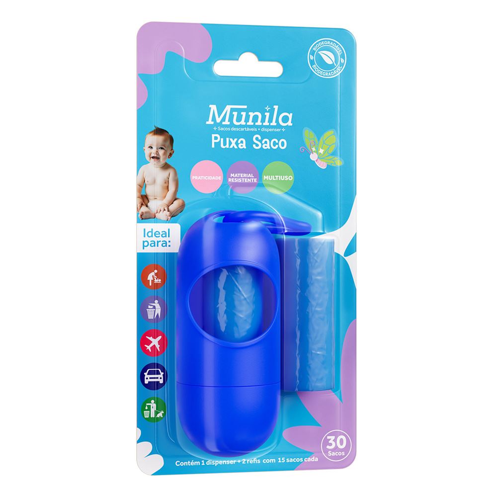 Kit Dispenser Refil Puxa Saco Munila Azul