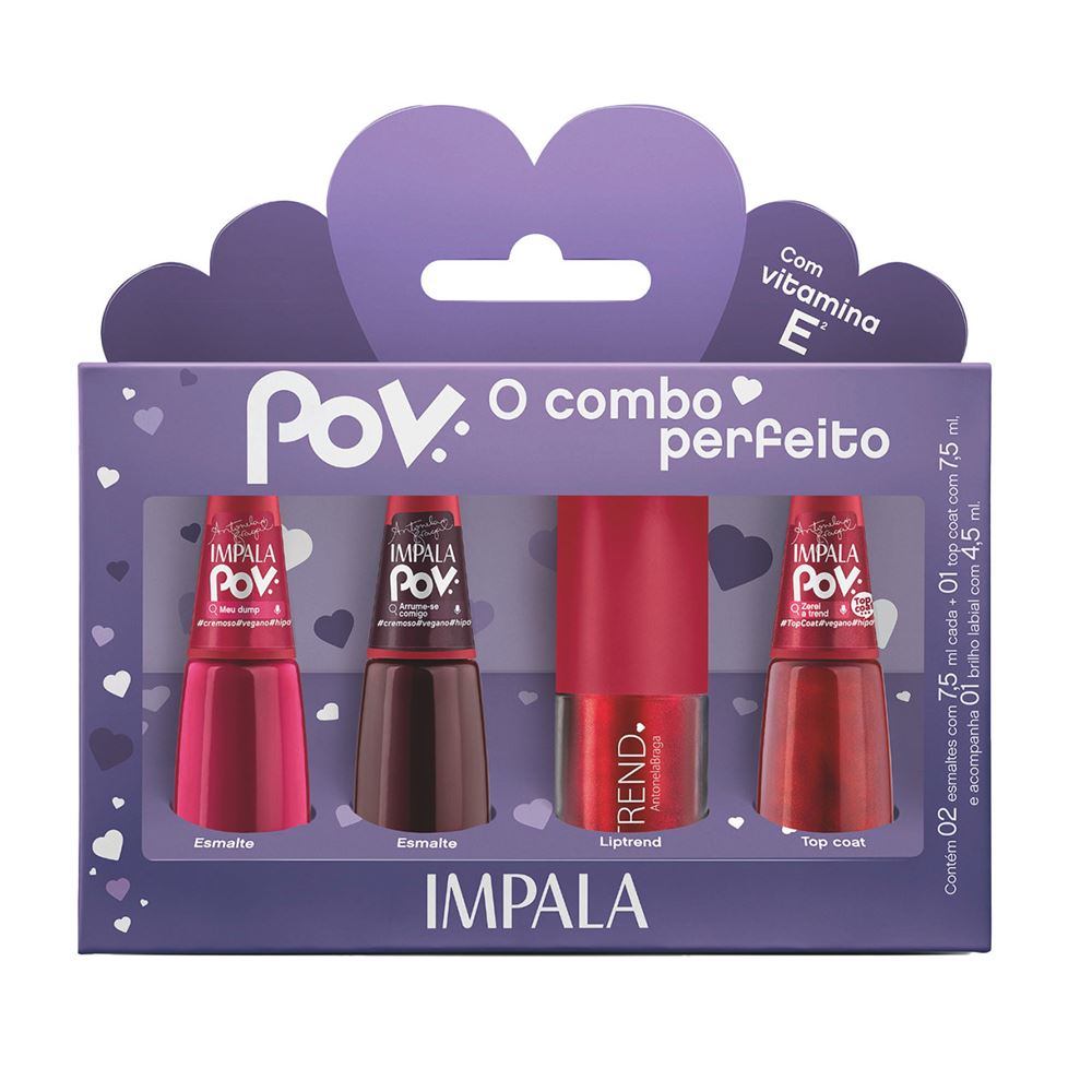 Kit Impala Pov Esmalte + Top Coat + Gloss Antonela