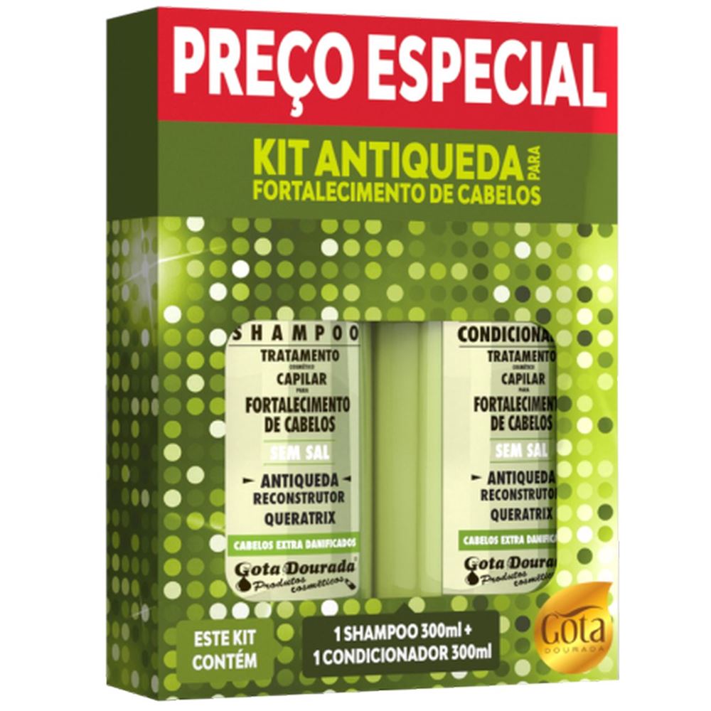 Kit Shampoo 300 Ml E Condicionador 300 Ml Antiqueda Gota Dourada