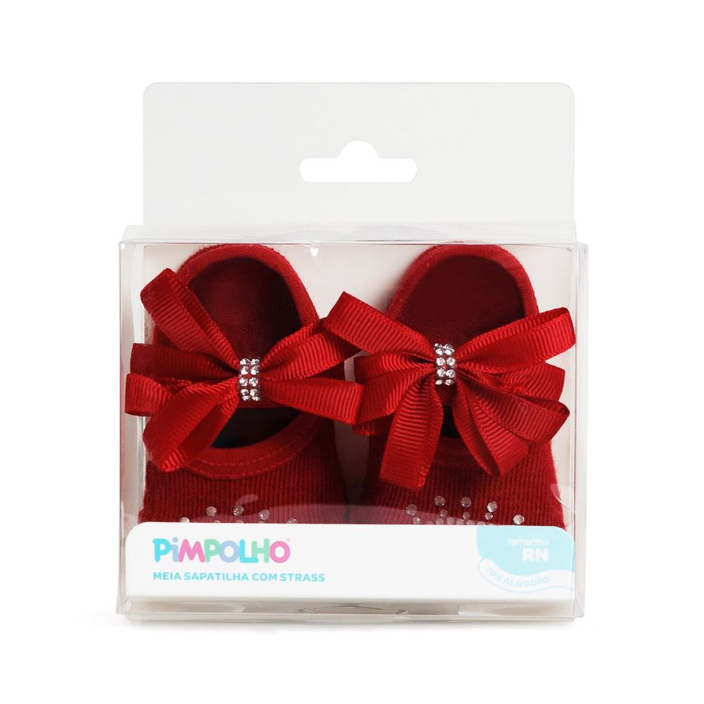 Meia Sapatilha Pimpolho Strass RN Vermelha